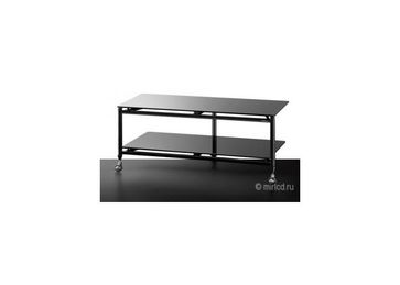 Стойка аудио-видео компонентов. 3 ножки, 2 полки. Полки лакированный МДФ 19 мм. Каркас трубчатый, стальной, анти-резонансный. Топ изоляция, плюс дополнительная система с зернами развязки. Cтруктура позволяет поставить на верхний уровень любой телевизор (LED, LCD и Плазма). Ролики для свободного передвижения стойки. Габариты (Ш х B х Г), мм: 1070 х 506 х 490. Расстояние между полками, мм: 220. Габариты нижней полки (Ш х Г), мм: 1000 х 440. Цвет: Черный. Производитель: Италия. None
