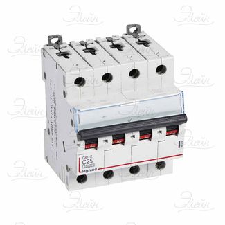 Четырехполюсные автоматические выключатели (4р, 4п, 4P) Legrand крепятся на динрейку и предназначены для защиты электроцепей и электрооборудования от перегрузки, короткого замыкания, скачков напряжения. Технические характеристики модульного 4р автоматического выключателя производства Legrand: