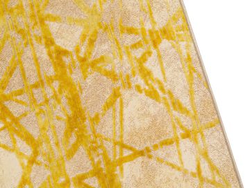 Мягкий ковер Line Yellow подойдет для оформления любой жилой комнаты и наполнит интерьер уютными солнечными нотками. Короткий ворс с грязезащитной и водоотталкивающей пропиткой легко поддерживать в чистоте, а обработанная латексом основа не дает модели скользить по полу.<br>