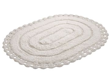 Коврик для ванной Yana, оригинально дополненный кружевом ручной работы, станет не только практичным дополнением домашнего интерьера, но и послужит элементом декора. Модель из натурального гипоаллергенного материала устойчива к износу и обесцвечиванию, превосходно впитывает влагу, не скользит и не требует особого ухода.<br>