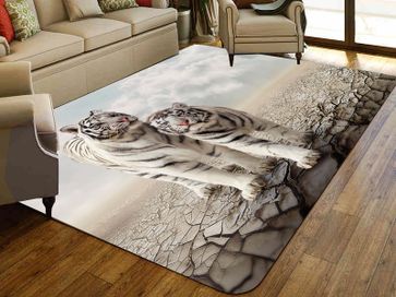 Ковер Белые тигры украшен эффектным рисунком, который не тускнеет и не выцветает со временем. По мере загрязнения модель можно чистить вручную или в стиральной машине, используя деликатный режим. Ковер выполнен из прочных и износостойких материалов, поэтому может использоваться в комнатах с высокой проходимостью.<br>