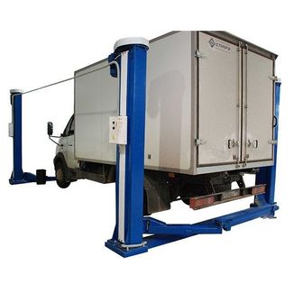 Четырехстоечный электромеханический подъемник стационарный предназначен для подъема/опускания грузовых автомобилей грузоподъемностью до 12 тонн при выполнении их технического обслуживания и ремонта. Подхват автомобиля осуществляется за раму. Синхронизация кареток противоположных стоек осуществляется цепной передачей. Траверса между стойками выполнена разъемной. Электрооборудование подъемника позволяет управлять как всеми стойками с общего пульта, так и каждой парой стоек в отдельности.