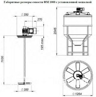 Емкость пластиковая ФМ 1000 в обрешетке с лопастной мешалкой