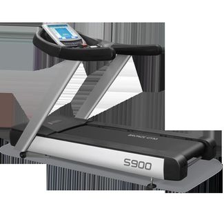 Bronze Gym S900 TFT - коммерческая беговая дорожка для спортклубов средней и повышенной проходимости. От беговое дорожки Bronze Gym S900 отличается наличием сенсорного большого LCD дисплея. Японский надежный мотор переменного тока Fuji Electric обеспечит долговечную работу дорожки без поломок. Мощность мотора 4.5 л/с. Беговое полотно профессиональное 3 мм толщиной и размером 150 х 53 см. Такое большое полотно позволит комфортно заниматься пользователям любого роста, не смотря постоянно под ноги. 13 встроенных разнообразных программ. Рама особопрочная и рассчитана на максимальный вес пользователя до 200 кг. Технические особенности:Надежынй японский двигатель Fuji Electric мощностью 4.5 л/с.Максимальный вес пользователя не должен превышать 200 кг.Беговое полотно профессиональное Habasit NVT-256 размером 150 х 53 см и толщиной 3 мм.Дека парафиновая двойная 30 мм с системой автоматического смазывания.Современная мультиабсорбирующая динамическая амортизация на основе изменяемых эластомеров antiSHOCKwaveМаксимальная скорость 20 км/ч.Угол наклона бегового полотна регулируется от 0 до 20 %. Регулировка электрическая.Дорожка оснащена транспортировочными роликами и компенсаторами неровностей пола. Особенности дисплея и программного пакета:Дорожка оснащена современным 15-ти дюймовым сенсорным полноцветным LCD дисплеем .На консоль выводится вся необходимая информация: профиль, время, скорость, дистанция, калории, пульс, угол наклона.Встроенных программ тренировок 13.Контроль за пульсом осуществляется при помощи сенсорных датчиков, которые располагаются на поручнях.Воспроизведение аудио и видео файлов со сторонних носителей. Встроенные динамики. Эфирное телевидение. Отличия от Bronze Gym S900:Наличие пульсозависимых программ.Более функциональная консоль.Мультимедийный сервис. Преимущества в этой ценовой категории:Надежный японский двигатель с высоким запасом прочности.Русифицированный большой сенсорный экран.Угол наклона полотна изменяется до 20%.Большое и просторное полотно.С