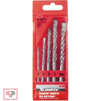 - Matrix Набор сверл по бетону, 4-5-6-8-10 мм, пластиковый кейс, Matrix по выгодной цене 185 р. руб.;