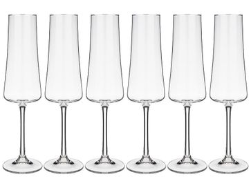 Набор бокалов для шампанского Exstra 6 шт. — прекрасный выбор для тех, кто ищет идеальный баланс качества, практичности и элегантного исполнения. Комплект выполнен из хрустального стекла, внешне неотличим от изделий из природного хрусталя, при этом намного превосходит их в прочности. Бокалы не теряют своего блеска и прозрачности даже после многочисленных циклов мытья в посудомоечной машине.<br>