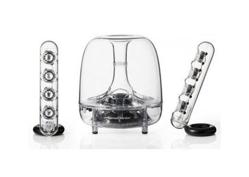 Трехкомпонентная акустическая система с необычным дизайном. Прозрачный корпус футуристической формы, неоновая подсветка сабвуфера, сенсорное управление и объемный, заполняющий помещение звук высочайшего качества.