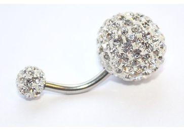 Вставки: кристаллы Сваровски. Цвет: белый. Металл: Нержавеющая сталь. Размер штанги: 10х1,6 мм. Размер шаров: 6мм и 12мм. Кол-во: 1шт. Артикул: PG150