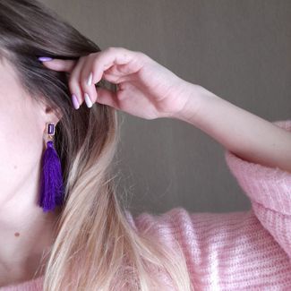 - Серьги Кисти яркий образ, прямоугольник, цвет фиолетовый в золоте по выгодной цене 200 р. руб.;