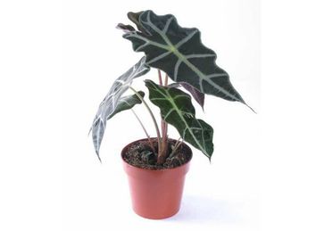 Цветок алоказия – вечнозелёный кустарник, относится к семейству ароидных. Родина – тропические леса Юго-Восточной Азии. Род растения алоказия насчитывает более полусотни видов, которые отличаются размерами, формой и окраской листьев, высотой самого растения, но все алоказии имеют характерные признаки – это клубневые растения, листья щитовидные, овальные с заострённым концом, плотные, с ярко выраженными прожилками. Листья располагаются на длинных, сочных черешках и имеют гидатоды (устьица на поверхности листьев, через которые растение сбрасывает лишнюю влагу). На родине алоказии гидатоды необходимы в период дождей, когда растение не в состоянии усвоить всю воду, которая поступает в почву, а комнатное растение алоказия начинает выделять капельки воды при излишнем поливе и чрезмерной влажности. Говорят, что цветок алоказии это барометр, на листьях появляются капельки воды накануне дождя. Алоказии цветёт довольно редко. Цветение алоказии наступает только у взрослого растения. Цветки мелкие и ароматные, собраны в соцветие-початок, которое прикрыто светлым листом-покрывалом. При опылении образуются плоды-ягоды с семенами внутри. Все части этого растения ядовиты. Поэтому надо стараться, чтобы сок растения не попадал на открытую кожу и слизистые оболочки, помещать растение следует таким образом, чтобы до него не могли добраться дети и домашние животные. Алоказия эффектное декоративно-лиственное растение, но встречается довольно редко, купить алоказию в цветочных магазинах можно не часто, хотя в больших светлых помещениях этот цветок выглядит очень красиво. Комнатное растение алоказия интересный цветок. Одни считают, что это неприхотливое, теневыносливое, быстрорастущее растение. Другие уверены, что это растение довольно капризное и место ему в теплице, а на самом деле комнатные цветы алоказия просто