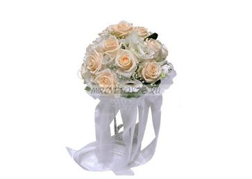 Изысканный букет невесты, выполненный в розово белых тонах. Кремовые розы придают букету роскоши а белые эустомы нежности. Будет прекрасно сочетаться с платьем цвета шампань. 800 Есть доставка.
