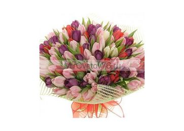 Закажите Букет Баронесса 101 разноцветный тюльпан у компании Мир Цветов в России на портале Alloy: