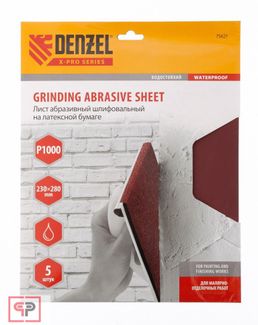 - Denzel Шлифлист на бумажной основе, P 1000, 230 х 280 мм, 5 шт, латексный, водостойкий Denzel по выгодной цене 115 р. руб.;