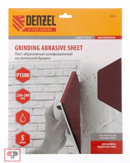- Denzel Шлифлист на бумажной основе, P 1500, 230 х 280 мм, 5 шт, латексный, водостойкий Denzel по выгодной цене 115 р. руб.;