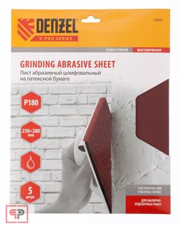 - Denzel Шлифлист на бумажной основе, P 180, 230 х 280 мм, 5 шт, латексный, водостойкий Denzel по выгодной цене 118 р. руб.;