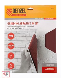 - Denzel Шлифлист на бумажной основе, P 600, 230 х 280 мм, 5 шт, латексный, водостойкий Denzel по выгодной цене 116 р. руб.;