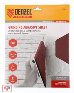 - Denzel Шлифлист на бумажной основе, P 80, 230 х 280 мм, 5 шт, латексный, водостойкий Denzel по выгодной цене 121 р. руб.;