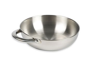 Глубокая миска из нержавеющей стали с ручкой. Может использоваться и для приготовления пищи, и как тарелка. Легко чистится и имеет привлекательный внешний вид даже после длительной эксплуатации. None