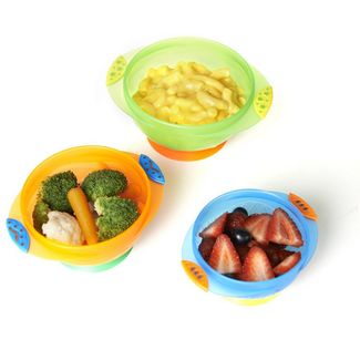 Набор удобных и безопасных тарелок на присосках 3 шт. Munchkin позволит накормить ребенка без потерь еды, а также хорошо подходит для обучения крохи самостоятельному приему пищи. В наборе - 3 тарелки разного размера и цвета. Присоска на каждой тарелке надежно удерживает посуду на поверхности стола. Можно мыть в посудомоечной машине. Не содержит вредных веществ. Минимальная сумма заказа 1500 руб. Возможен самовывоз. Есть доставка.