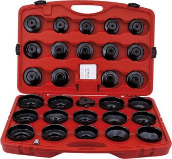 Съёмники изготовлены в форме чашек из штампованной инструментальной стали. Для предотвращения появления коррозии, каждый съёмник покрыт порошковой эмалью. Съёмники способны выдерживать большие нагрузки. Каждая чашка снабжена усиленной площадкой с посадочным квадратом. Конструкция съёмников в форме чашек исключает повреждение масляного фильтра при его снятии и установке. Возможность использовать привод с посадочным квадратом 1/2"; 3/8"; гаечный ключ или торцевую головку на 21 мм. Для удобства на каждой чашке имеется маркировка её размера. Эта же маркировка дублируется на ячейке хранения в кейсе. В комплекте есть так же универсальный трёх-лапый съёмник типа «краб». Комплектность: Съёмники-чашки: ? 65мм (2-9/16") 14 граней — 1 шт. Подходит для Champ, Hastings, GM/AC, Wix, NAPA, Purolator, Daihatsu, Toyota ? 65, 67мм (2-9/16", 1-21/32") 14 граней — 1 шт. Подходит для фильтров No 785, так же для фильтров производства Канада, включая PH4386, PH4967, PH6017, PH6018 ? 68мм (2-11/16") 14 граней — 1 шт. Подходит для Hastings, Mazda, Ford Escort, Capri, Subaru, Fran PH6607 (Фильтры, производства Корея), Motorcraft FL816 ? 73мм (2-7/8") 14 граней — 1 шт. Подходит для Toyota/Lexus ? 74мм (2-29/32") 15 граней — 1 шт. Подходит для Audi, GM.Rover. Chrysler ? 74, 76мм (2-29/32", 3") 15 граней — 1 шт. Подходит для Fram, AC, Saturn, Opel, Ford, VW, Audi, Mercedes Benz ? 75, 77мм (2-15/16", 3-1/32") 15 граней — 1 шт. Подходит для Casite, GM/AC, Hastings, Wix, Napa, Ford, Isuzu, Mercedes Benz, Opel ? 76мм (3") 12 граней — 1 шт. Подходит для Fiat (Ducato, Scudo, Ulysee), Renault, (Megane. Laguna. Espace III.) Mercedes ? 76мм (3") 14 граней — 1 шт. Подходит для Champion, Champ Lee, Purolator, Mopar, VW, Porsche, Mercedes Benz, BMW, Audi,(I.B.A3TD) Opel ? 76 (3") 30 граней — 1 шт. Подходит для Motorcraft только FL-400A ? 76мм (3") 8 граней — 1 шт. Подходит для Fiat (z.B. Marea), Lancia (z.B. D