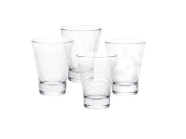 Набор стопок Лаунж Клаб 4 шт. позволит эффектно подать напитки для компании и создаст непринужденную атмосферу за праздничным столом. Бокалы из легкого и прозрачного стекла украшены стильным орнаментом и отлично сочетаются с другой посудой для сервировки.<br>