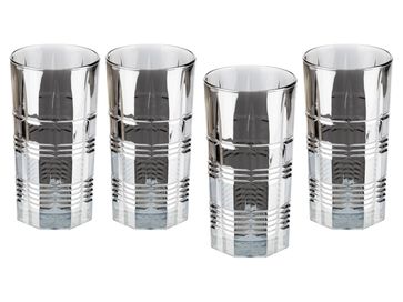Стильный набор высоких стаканов Даллас Silver 4 шт. может стать отличным подарком для друзей или коллег. Благодаря красивому стальному блеску и элегантным граням посуда прекрасно смотрится на праздничном столе. Прочное стекло устойчиво к появлению царапин, внешним повреждениям и перепадам температур.<br>