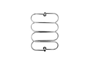 Электрический полотенцесушитель Energy Aura 800x600 со стационарной греющей секцией – это специальный электрический нагревательный прибор из пищевой нержавеющей стали, имеющий эксклюзивный дизайн, c 5-ю выпуклыми перемычками в виде двойного 4-x секционного змеевика. Предназначен для просушки вещей из ткани и дополнительного обогрева небольшиx помещений — душевыx, ванныx комнат и санузлов.