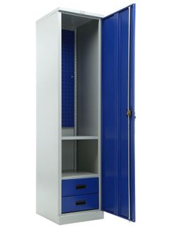 Предназначены для размещения и хранения инструментов, оснастки и прочих приспособлений на рабочих местах в мастерских, цехах и других производственных зонах. Представляет из себя сборную конструкцию и должен собираться с помощью винтов самонарезающих с потайной, полукруглой головкой. Шкаф изготовлен из углеродистой стали качественной 08,08пс, 08кп,10, 20 пс,10 кп горячекатаного или холоднокатаного проката с толщиной стенки не менее 0,8 мм.