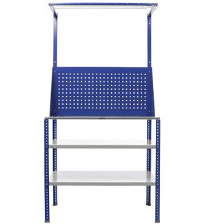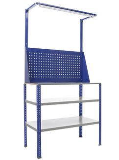 Столешница МДФ 16 мм покрытая листом оцинкованного металла 1.2 мм. – до 100 кг нагрузка опоры изготовлены из стойки стеллажа MS Hard , профиль сечением 40х40 мм,толщина стали 1,5 мм. Шаг перфорации 50 мм комплект верстака оснащен двумя полками с нагрузкой (100 кг) на верстак установлен экран и комплект освещения на опорах установлены пластиковые подпятники верстак возможно дополнить ящиком (нагрузка 30 кг), экраном и комплектом освещения None