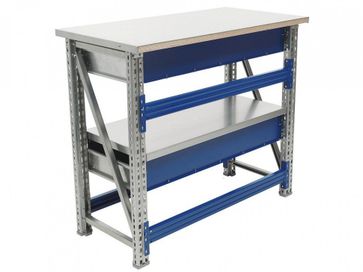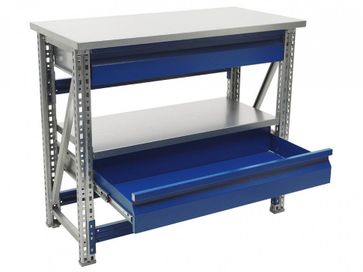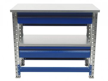 Опора МF-1 - 2 шт. Балка M 90 - 3 шт. Столешница МТ-100 - 1 шт. Ящик верстачный М-140 - 2 шт. Полка верстачная М-100 - 1 шт. None