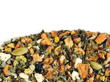Травяная смесь с кусочками яблока, можжевеловыми ягодами, лепестками ромашки, зелеными плодами кардамона, гвоздикой, перцем, дополненная ройбушем, имбирем, корицей, фенхелем, зверобоем, листьями ежевики, цедрой цитрусовых - ингредиентами, которые в народной медицине используют для снижения веса. Имбирь способствует контролю обмена веществ, корица используется для стимулирования обменных процессов, цитрусовые тонизируют и бодрят. Потребление этого настоя поистине целебным образом скажется на организме.