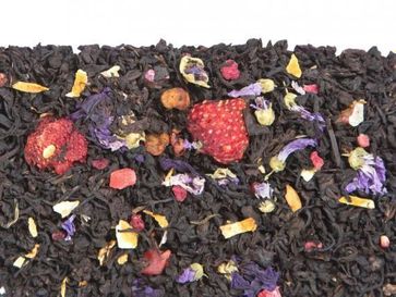 Купаж крупнолистового черного чая (Шри-Ланка) с добавлением малинового ананаса, клубники, цедры лимона, лепестков мальвы, сафлора в сочетании ароматом бергамота и клубники - однозначно порадует чайных гурманов.