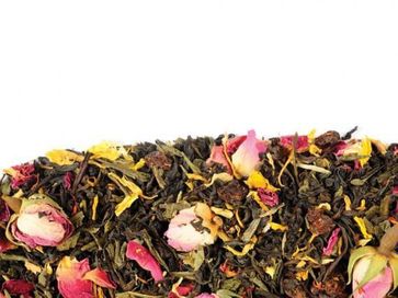 Яркая смесь черного и зеленого байхового чая с ягодами облепихи, желтыми бутонами, цветками календулы, лепестками подсолнечника, розы и сафлора, с богатым вкусом облепихи и насыщенным ароматом цитрусовых.