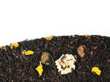 Крупнолистовой черный байховый чай с кусочками ароматного персика, лепестками подсолнечника и соцветиями английской ромашки. Напиток имеет сладковатый фруктово-сливочный вкус.