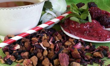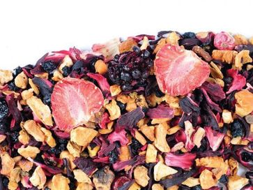 Смесь с кусочками яблок, лепестками гибискуса, ягодами вишни, клубники, черной смородины, малины и ежевики. Напиток имеет насыщенный вкус вишни. Благодаря большому количеству ягод купаж получается не только вкусным, но и полезным. Гибискус хорошо утоляет жажду и бодрит, когда накапливается усталость. Также чай каркаде сохраняет молодость и благоприятно влияет на здоровье. Клубника богата аскорбиновой кислотой и содержит витамины группы В, её вкус поднимает настроение и настраивает на позитивную волну. Ежевика и малина славятся высоким содержанием витамина С, который так необходим для поддержания иммунитета