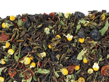 Смесь цейлонского и индийского чая с ягодами барбариса и шиповника, с листьями мяты и чёрный смородины, дополненные цветками ромашки. Необычный натуральный чай с добавками растений средней полосы России. Вся мудрость предков и богатство русской природы заключены в этом чае. Иван-чай укрепляет иммунитет, обладает успокаивающим действием, очищает организм от токсинов. Ягоды барбариса отлично согревают в прохладную погоду, мягко тонизируют. Ромашка улучшает работу кишечника, успокаивает нервную систему