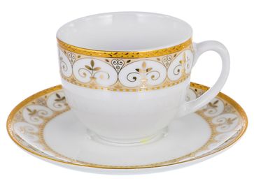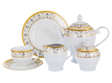Состав набора: <br> Чашка с блюдцем 220 мл, 6 шт.<br> Тарелка 200 мм, 6 шт.<br> Сахарница с крышкой 300 мл.<br> Молочник 300 мл.<br>
