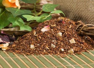 Уникальный напиток из жаркой Африки с массой полезных веществ - напиток, достойный Императора!А если к ройбушу добавлены цедра апельсина, кусочки яблока и ананаса, гибискус и шиповник, лепестки сафлора, с благородным ароматом айвы и сливок - то напиток поистине достоин королей! Приятный орехово-травянистый оттенок вкуса, дополненный экзотическими оттенками цитрусовых и цукатов, дарят мягкую приятную сладость и делают этот чай приятным и незабываемым.
