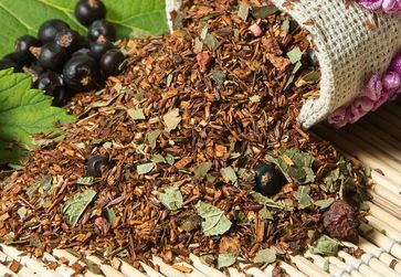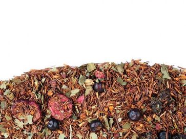 Почувствовали недомогание из-за простуды, появился насморк и озноб? Не спешите в аптеку за медикаментами! Более полезен и абсолютно безвреден чай ройбуш Ягодный поцелуй с поразительным лечебным эффектом. А какой восхитительный ягодный вкус у него! Мягкая терпкость можжевельника, неповторимый аромат черной смородины, яркая сладость малины, ежевики и клюквы. Все компоненты сочетаются гармонично, аромат насыщен красками лета, а вкус раскрывается постепенно: от нежного ягодного привкуса до густого орехового. Элитный чай ройбос является мощнейшим антиоксидантом благодаря содержащимся в нем веществам, которые устраняют свободные радикалы. В нем не содержится кофеин, поэтому напиток подходит как пожилым людям, так и детям. Он укрепляет стенки сосудов, помогает бороться с онкологией. Идеален для беременных – убирает токсикоз, выводит лишнюю жидкость, предотвращает отечность и анемию. Благодаря яркому вкусу спелых лесных ягод смесь обладает привлекательным ароматом.