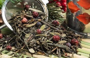 Слегка пряный и хвойный аромат саган-дайля и можжевельника прекрасно сочетается с зеленым чаем и становится слегка терпким от привкуса яркой брусники. Согласно народной медицине, саган-дайля активизурует работу головного мозга и положительно влияет на работоспособность. В сочетании с можжевельником может обладать антисептическими и противовоспалительными свойствами.