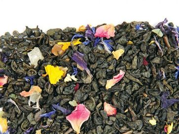 Смесь зелёного чая-"пороха" с гибискусом, кусочками ананаса и папайи, с лепестками красной розы, мальвы. василька, подсолнечника, с ароматом фруктов: маракуйи, манго и груши. Содержит много антиоксидантов и витамина С. По-восточному роскошно украшен разноцветными яркими лепестками цветов и окутан драгоценными ароматами, словно шелком.
