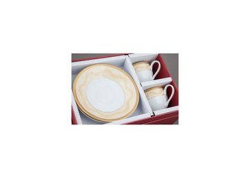 Жизнеутверждающая деколь коллекции Ривьера это несомненный плюс хозяйке при сервировке праздничного стола. Прекрасно сочетающиеся бежевый и золотой на белоснежном фоне украсит любое торжество. В сервиз входят: чашка чайная - 6 шт чайные блюдца - 6 шт None