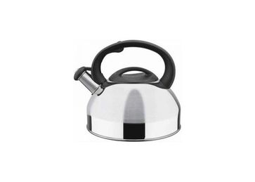 Состав: нержавеющая стальС кнопочным механизмом на ручке для поднятия свисткаОбъёмом 3,5 литраРучка бакелитовая фиксированная черного цветаПоверхность матовая в комбинации с зеркальной полировкойСвистокПодходит для всех видов плит None