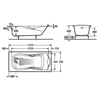 - Чугунная ванна Roca Haiti 150x80 с отверстиями под ручки по выгодной цене 22 900 р. руб.;