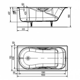 Чугунная ванна Сибирячка (150x75) с отверстиями под ручки