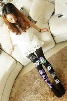 Оригинальные черные колготки с сиреневым рисунком и белыми надписями. Готичный образ с налётом гранжа! В наличии 1 шт None Есть доставка.