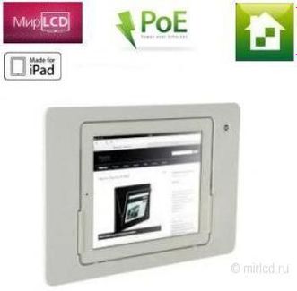 Моторизированная док-станция. Встраиваемая в стену, моторизованная док-станция для Apple iPad Air 2 / Air 1. Стеклянная передняя панель, установка на магнит. Установка в положении пейзаж. Установка в кирпичную или сухую стену. Управляющий контакт для открытия / закрытия (например ключ-выключатель / переключатель код / палец сканер). Оповещение о статусе док-станции (беспотенциальный контакт). Включение / выключение питания реакция на выбор (не открытие / закрытие / нет реакции). Включение / выключение питания реакция на выбор (не открытие / закрытие / нет реакции). Механизм открытия с помощью датчика приближения (может быть отключен). Внешний контакт (например, клавиатура или запись отпечатков пальцев). Функция автоматического закрытия через 10 сек. (может быть отключена, например, при настольном монтаже). Функция автоматического открытия в случае сбоя питания (может быть отключена). Возможен настольный монтаж. Звуковой выход (3.5 мм джек, стерео вход, аналоговый вход). Интегрированные звуковые выходы iDock позволяют подключить iPad к любой звуковой системе и использовать в качестве источника звука. Выбор и воспроизведение песен в современной версии старомодного музыкального автомата. На борту силовой трансформатор питания 110-230 В переменного тока / PoE (пассивный инжектор). Нажмите сенсор, удалите iPad и наслаждайтесь мобильностью Вашего iPad. iDock Air Glass Landscape может быть интегрирована в стену или в мебель (стол или на кухне). В то время как Ваш iPad Air 2 / Air непрерывно заряжается доступна его полная функциональность. Используйте Ваш iPad Air 2 / Air для потоковой передачи в качестве музыкального центра или телевизора, электронной фоторамки или панели управления в системе умного дома, Ваши возможности почти безграничны. iDock Air Glass Landscape iPad Air является идеальной док-станцией для Вашего iPad Air. Док-станция может быть установлена заподлицо в любой стене. iDock Air Glass Landscape iPad Air может быть использована для управления домашней автом