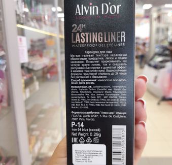 - Alvin Dor Карандаш для глаз гелевый водостойкий P-14 LASTINGLINER по выгодной цене 279 р. руб.;