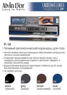 - Alvin Dor Карандаш для глаз гелевый водостойкий P-14 LASTINGLINER в каталоге Декоративная косметика в России;