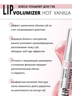 - LUXVISAGE Блеск-плампер для губ Lip Volumizer Hot Vanilla l ЛюксВизаж. Тон 306 по выгодной цене 319 р. руб.;